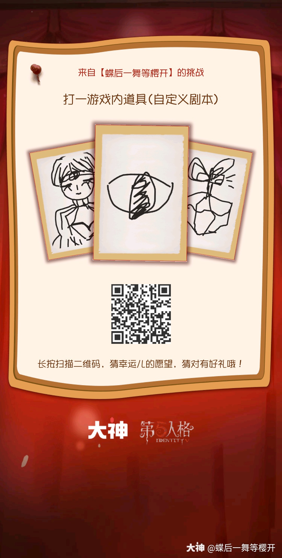 网易大神第五人格开始啦 来猜一猜幸运儿许下的愿望是什么吧 点击 马上领生日礼包 来自网易大神第五人格圈子 蝶后一舞等樱开